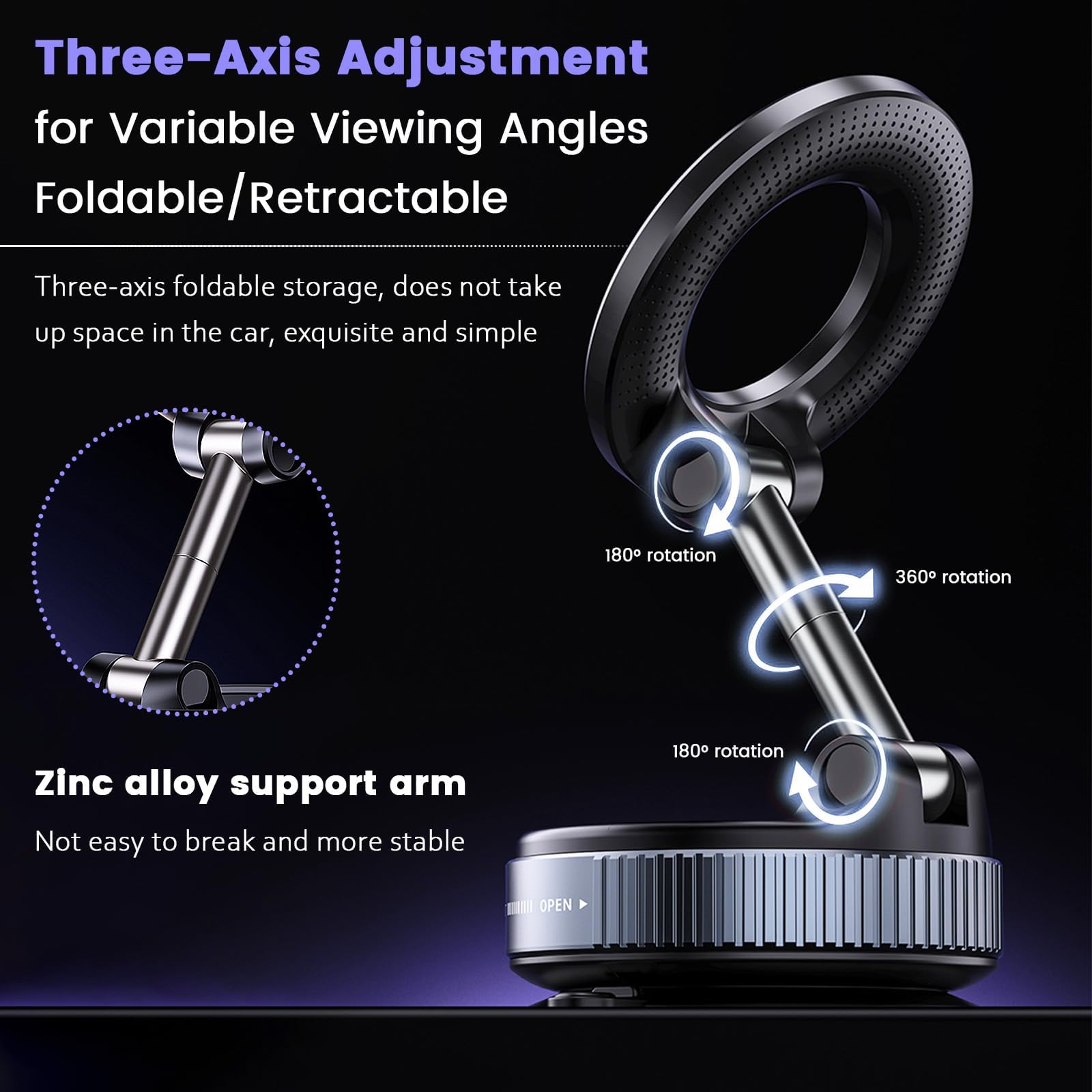 Magnetic Phone Holder (Upgraded 360° Vacuum Suction) Metal Arm Foldable for Car Dashborad & Windsheild/Gym/Mirror/Shower